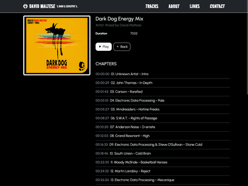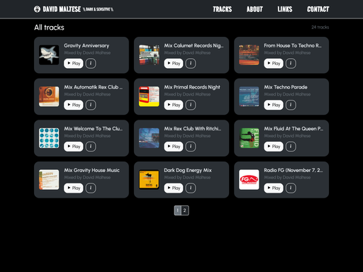 David Maltese, Dark & Sensitive : site officiel du DJ David Maltese avec une vingtaine d'heures de ses meilleurs sets et mix.