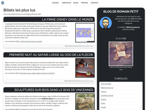 Création du Blog de Romain Petit, une plateforme personnelle permettant de publier et partager des articles (billets) sur différents sujets.