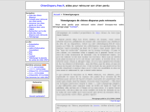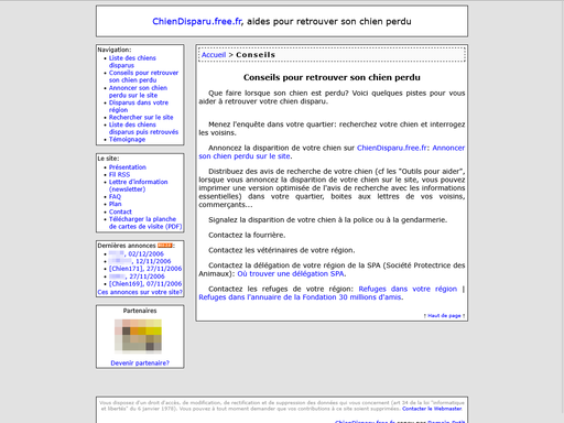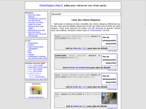 Tout en restant une page structurée de présentation, voici ce qu’un service comme Chien Disparu met en avant :